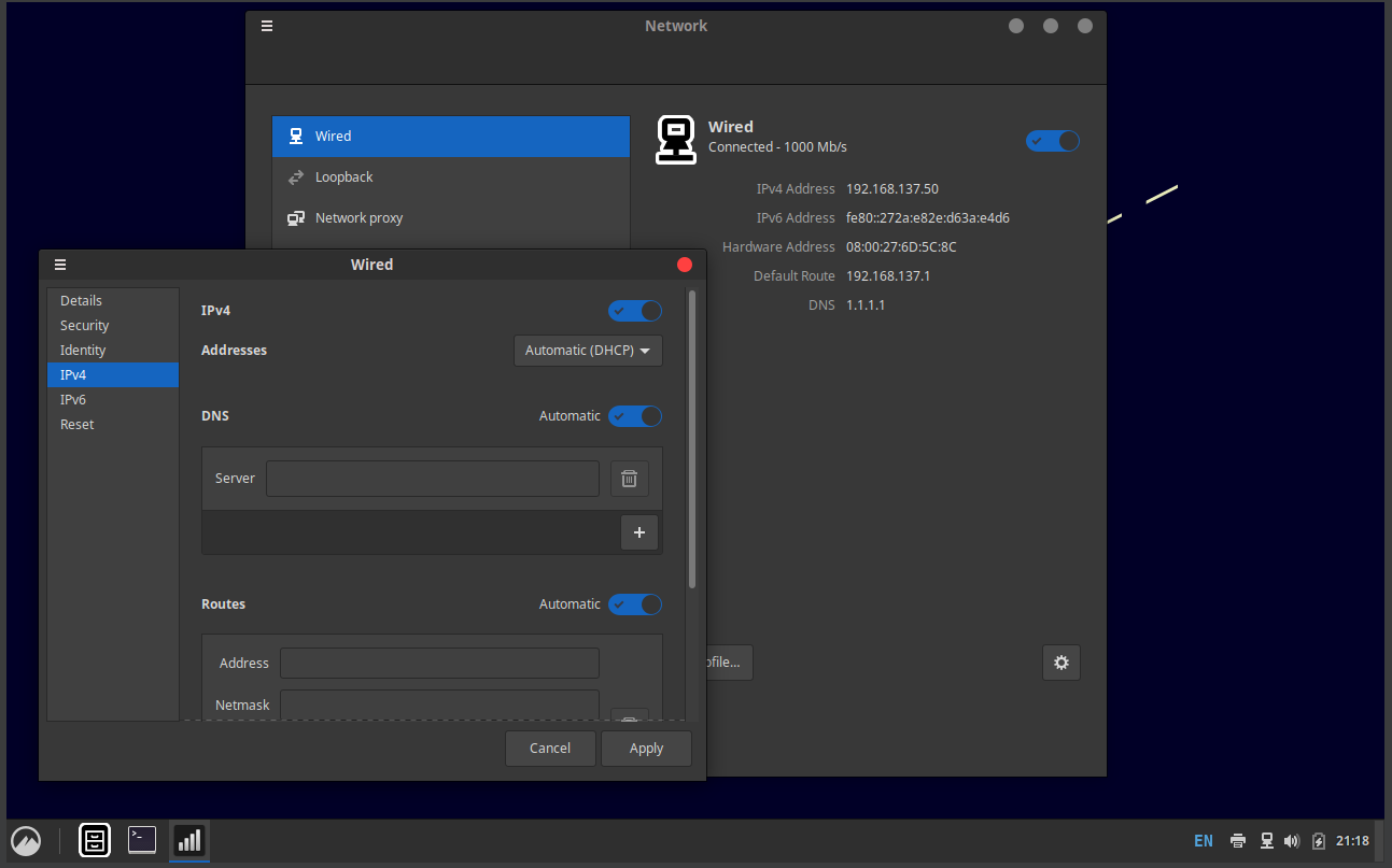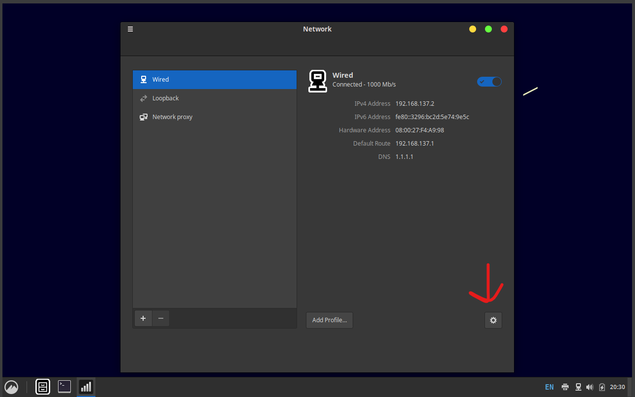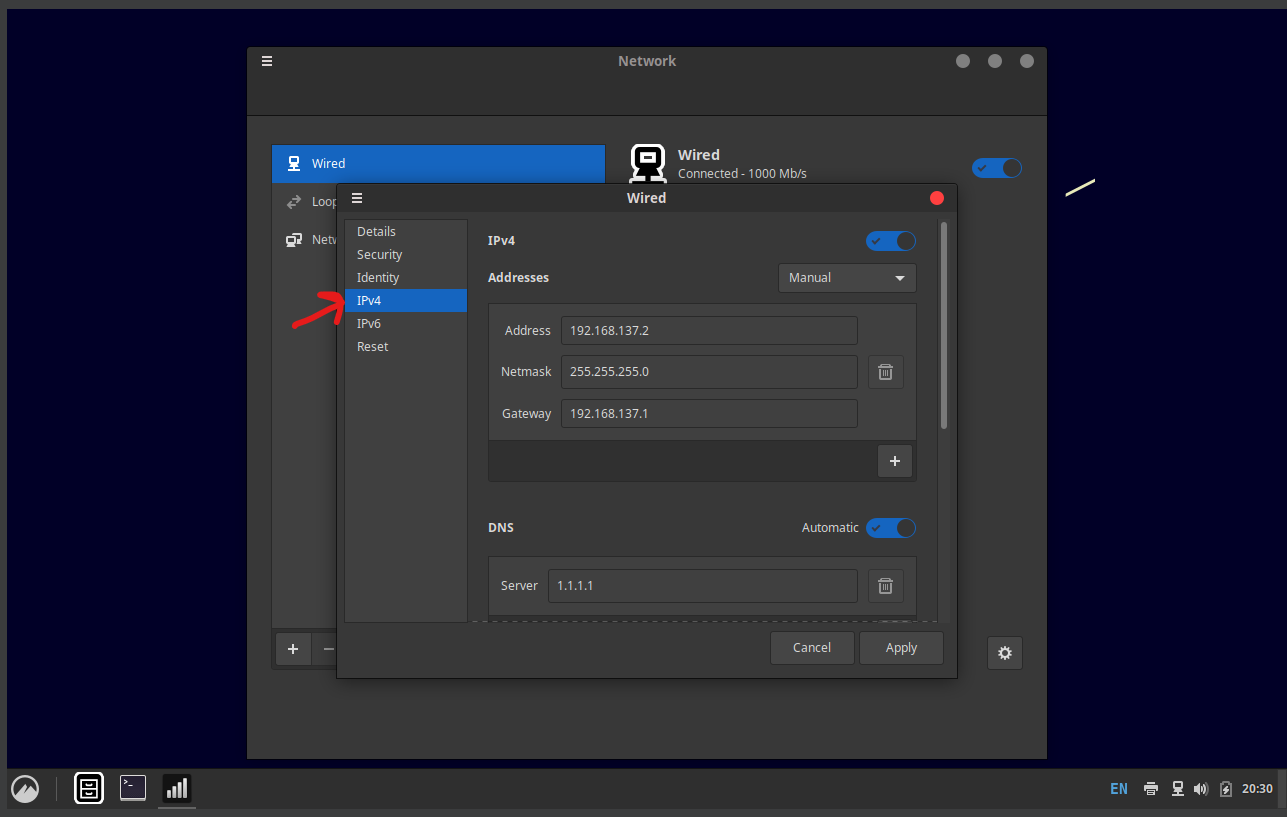 Gateway: 192.168.137.1 (the host’s IP we saw earlier)