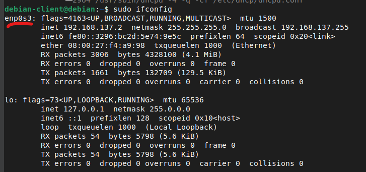 Run sudo ifconfig. Locate the network interface with the static IP you set and copy its name. In my case it is enp0s3.